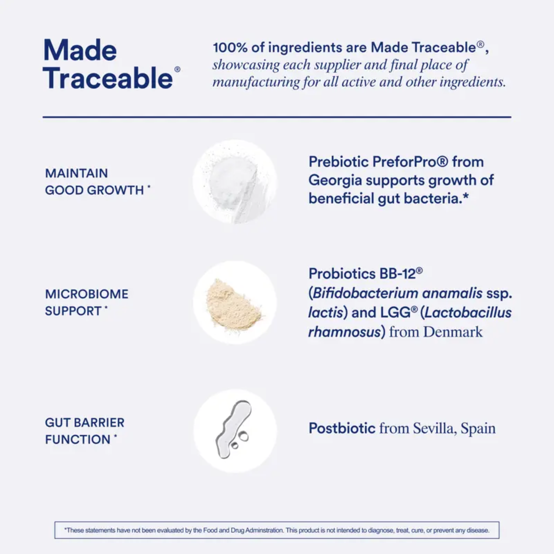 This supplement is designed to support gut balance and digestive comfort as part of a daily routine. It combines prebiotics, probiotics, and postbiotics to help maintain a healthy gut environment over time.